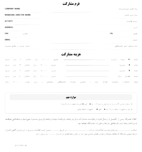 سازه خود ساز (اکونومی ، متوسط ، لاکچری) سازه پیش ساخته (تتریس ، ماکسیما ، پارتیشن) نام : نام موسسه / شرکت : شماره تماس : ارسال